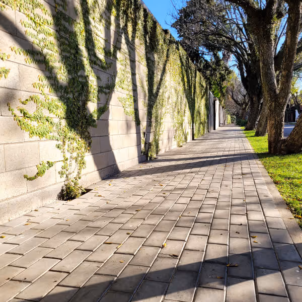 Para una vereda frontal se coloca usualmente baldosas en vez de “mosaico”, la diferencia esta en el bisel en los lados de la pieza. Suelen tener algun diseño que sirven para mejorar el drenaje del piso y aumentar su capacidad antideslizante. Lo más importante es que sea alto tránsito. Dubra detalla rutinas de curado y limpieza: por ejemplo, en calcáreos se recomienda un curado o hidrolaqueado y futuros mantenimientos con cera.